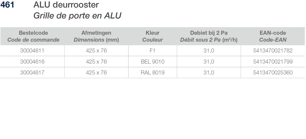 Rejilla para puerta 461RAL 9010 425x76 mm Renson