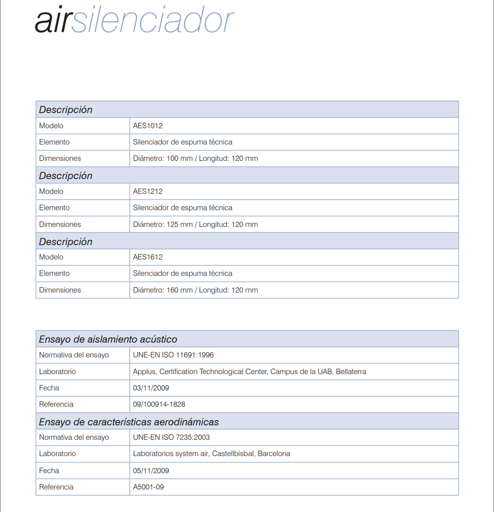 Extracción en silencio. Silenciador para conductos rígidos rectos